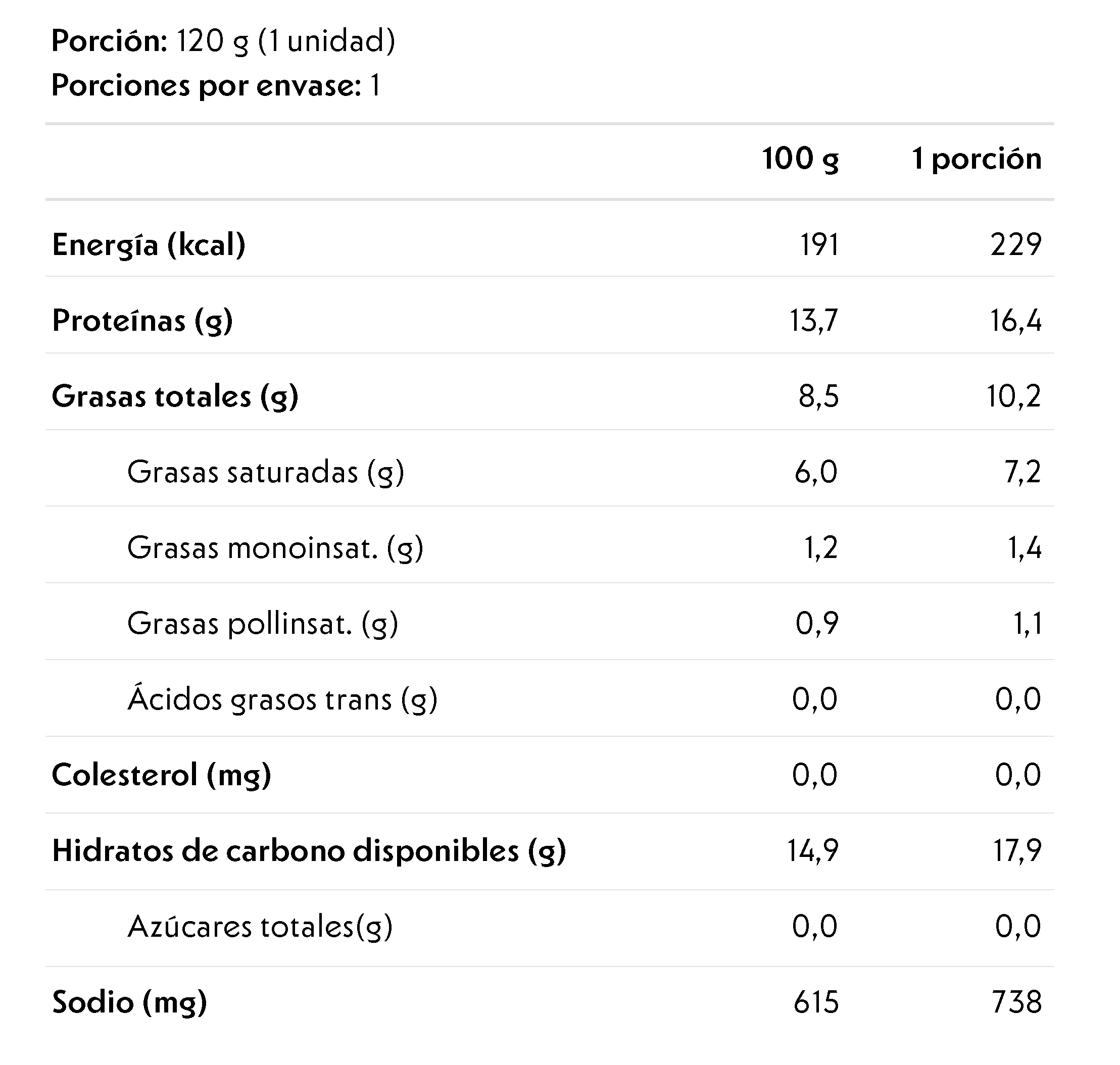Contiene gluten. Elaborado en líneas que también procesan soya, leche,huevo, sulfitos, pescado, crustáceos, maní y nueces.